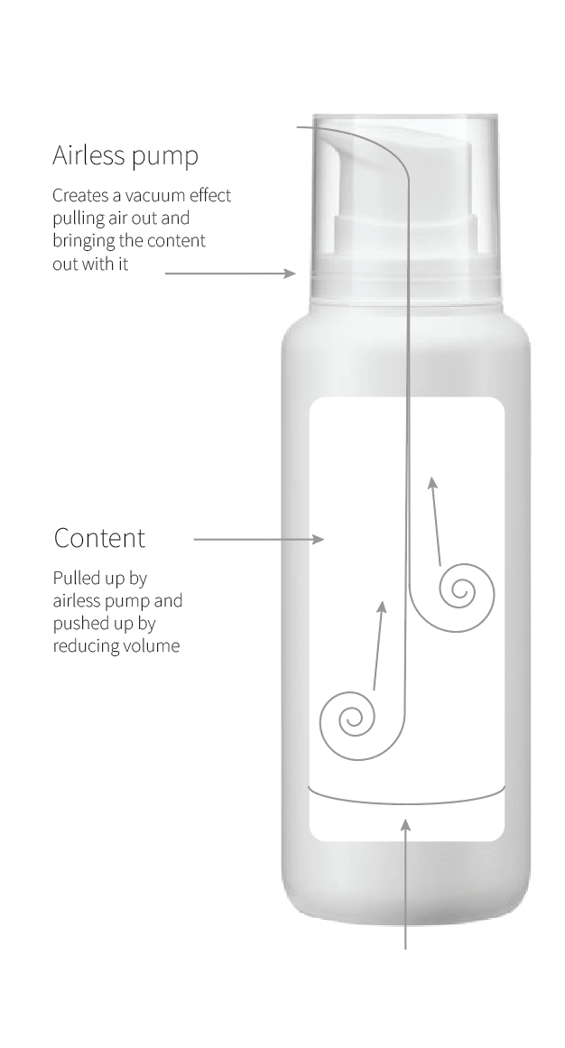 - Airless bottles are always sealed, even when using for dispensing. Convenient and comfortable to use with a 360° application.